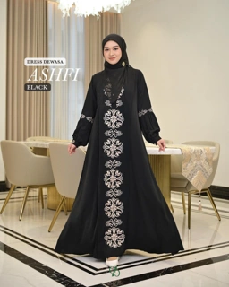 SARIMBIT ASHFI DRES & KOKO WARNA BLACK | READY STOCK