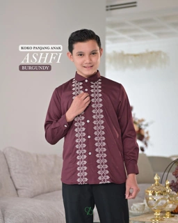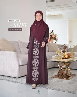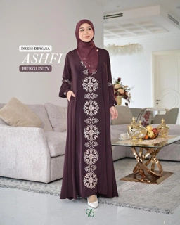 SARIMBIT ASHFI DRES & KOKO WARNA BURGUNDY | READY STOCK