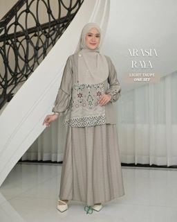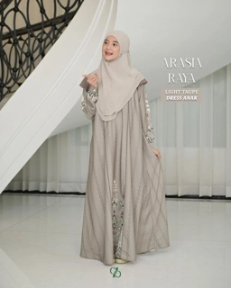GREENISM - (Pre-Order) Arasia Raya Dress Gamis Wanita, Koko dan Oneset | Light Taupe | Baju Atasan Wanita Terbaru | Gamis Lebaran 2026 Model Gamis Terbaru