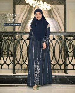 GREENISM - (Pre-Order) Arasia Raya Dress Gamis Wanita, Koko dan Oneset | Navy | Baju Atasan Wanita Terbaru | Gamis Lebaran 2026 Model Gamis Terbaru