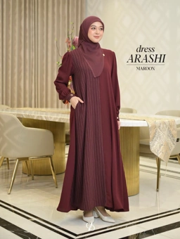 Dengan saku pada bagian kanan dress dan pergelangan tangan kancing dengan metal tag (wudhu friendly)
